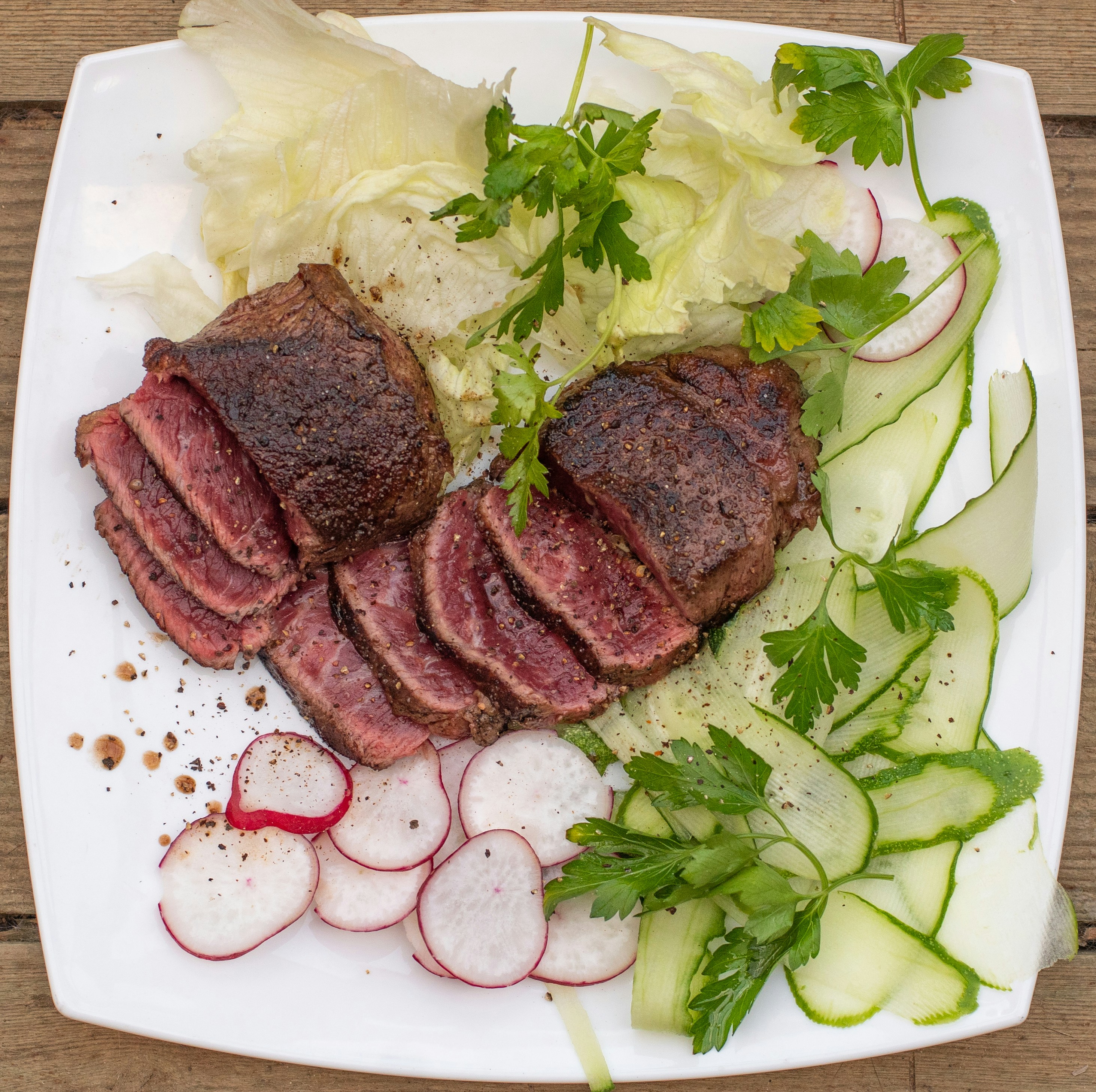 12oz USDA Choice, garlic mashed potatoes, seasonal vegetables