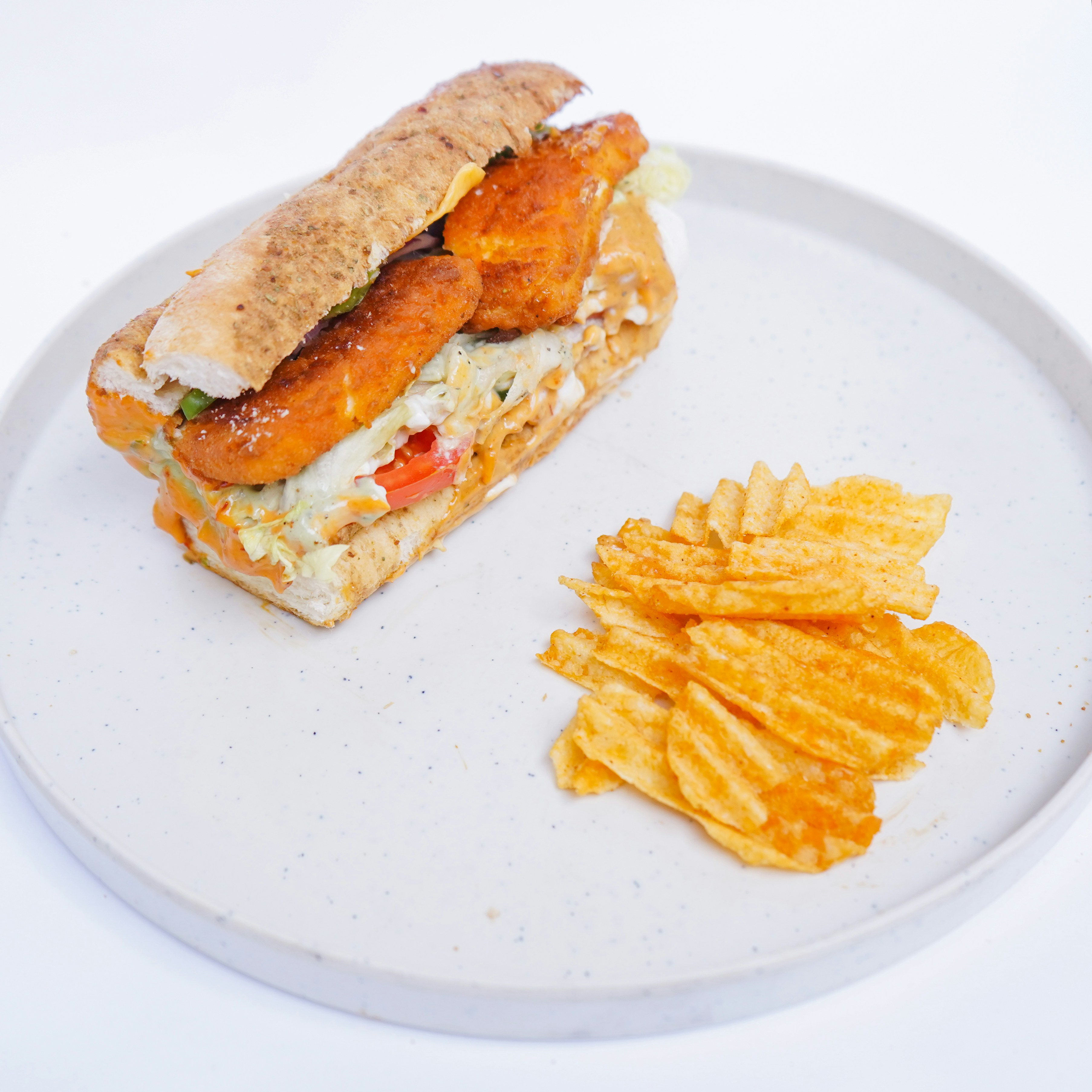 Buttermilk fried chicken, coleslaw, pickles, spicy mayo